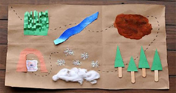 2. Glue them on paper along with cotton balls in a maze order leading to the cave.