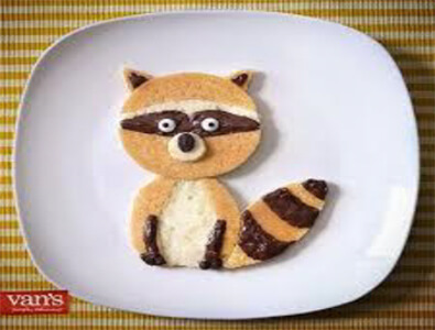Parents can help their child/children make their own edible breakfast raccoon.